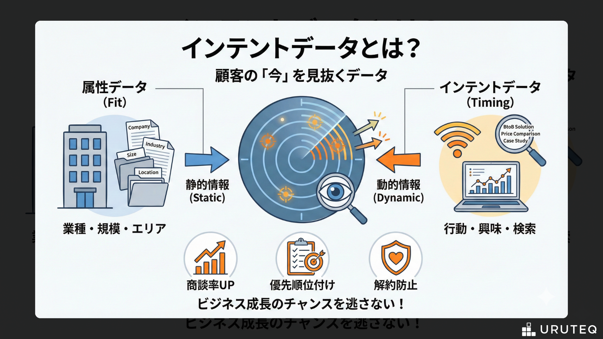 インテントデータの本質は、顧客の「属性」だけでなく「行動」を見ることで、最適なアプローチのタイミングを教えてくれることにあります。