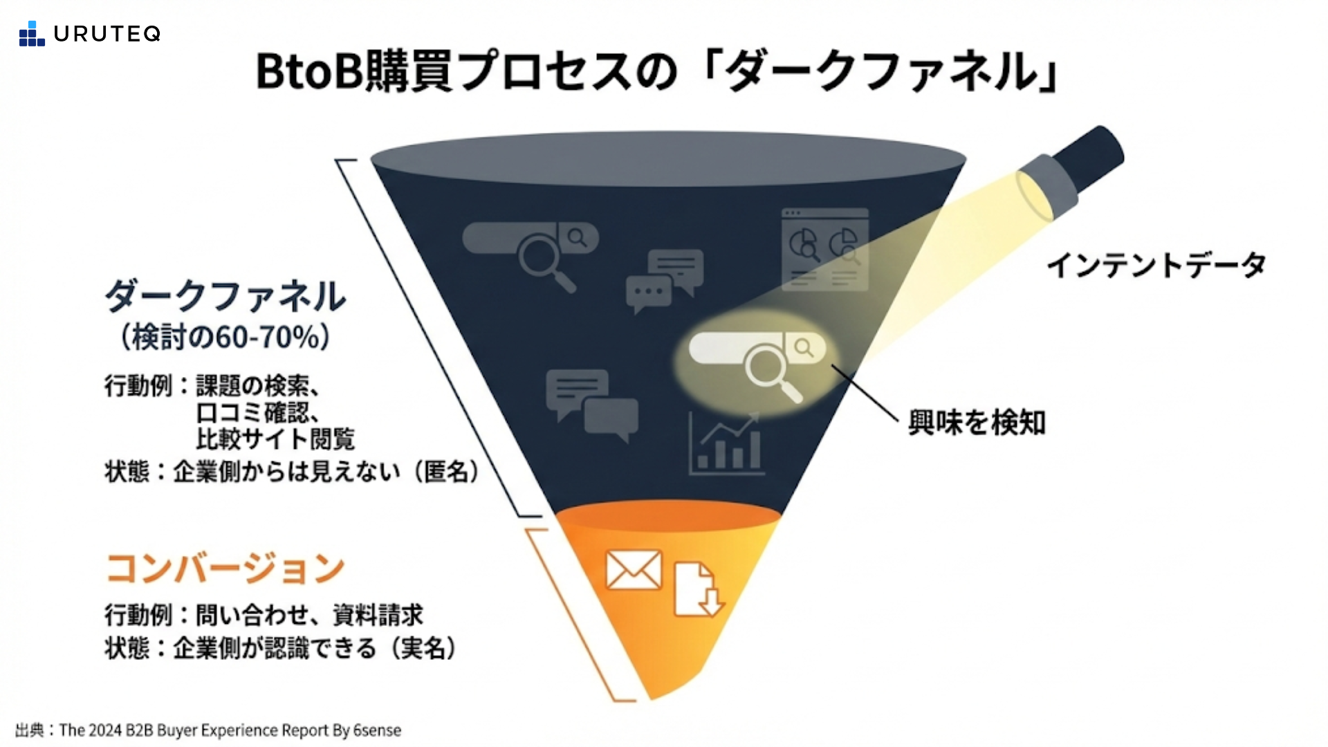 待っているだけでは出会えない顧客に、先回りして会いに行く。これが今のBtoB市場でインテントデータが必要とされる最大の理由です。