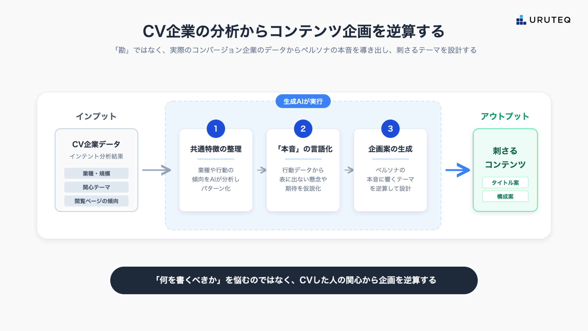 勘で企画を考えるのではなく、実際にCVした人の関心から逆算してテーマを設計する。この発想がコンテンツの命中率を変えます。