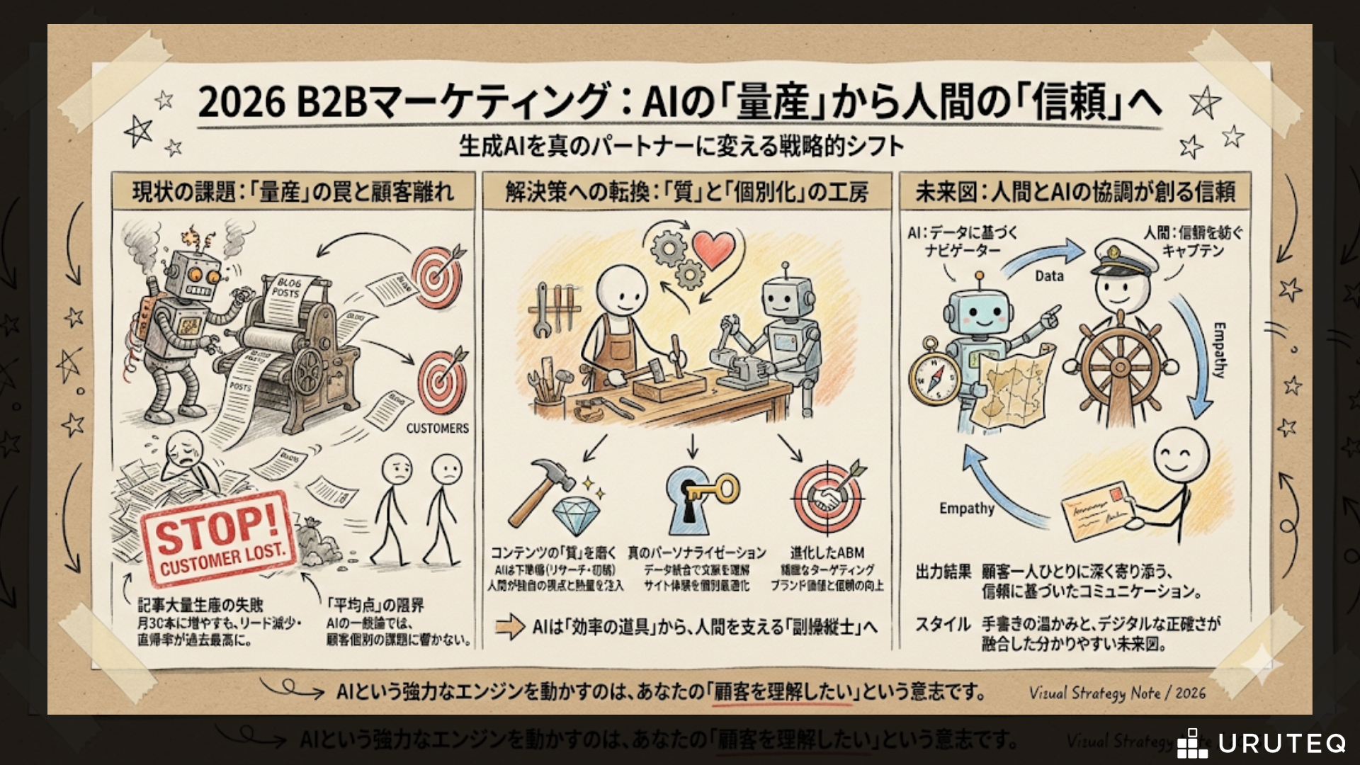 テクノロジーの波に飲まれるのではなく、それを乗りこなす。2026年、AIを真のパートナーとして迎え入れた企業が、競争の激しいB2B市場で新たな価値を創造していくことになるでしょう。