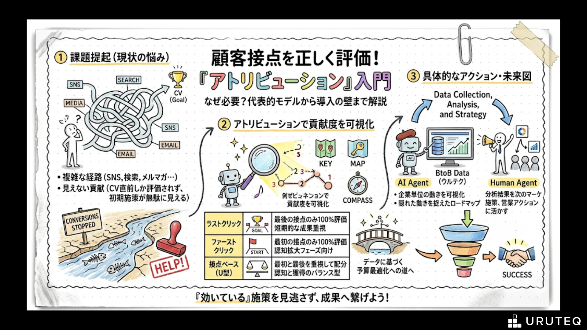 効いている施策を早すぎる判断で止めてしまうリスクを減らし、マーケティングの気づきを広告や資料導線、営業アクションへとつなげる。そうした一連の仕組みを構築することが、複雑な購買プロセスを勝ち抜く要因となります。