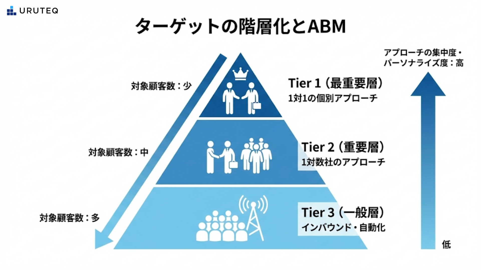 GTMで定めた市場の中にいる顧客を、ポテンシャルや重要度に応じて階層化(ティアリング)します。