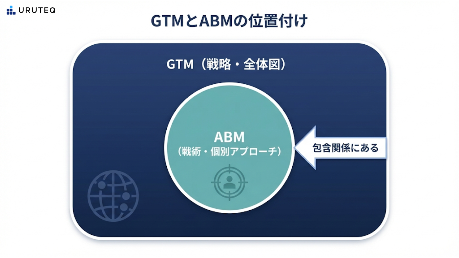 ここまで見てきたように、GTMとABMは対立する概念ではありません。むしろ、包含関係にあると言えます。