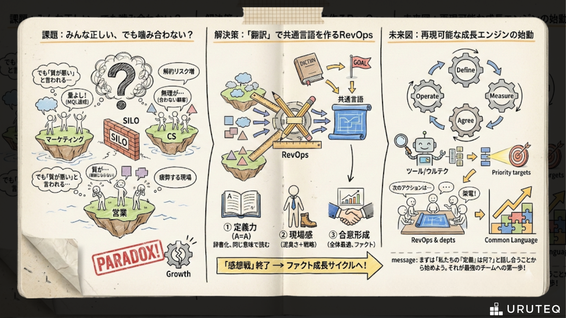 RevOpsは、その感想戦を終わらせ、ファクトに基づいた成長のサイクルを回すための機能なのです。