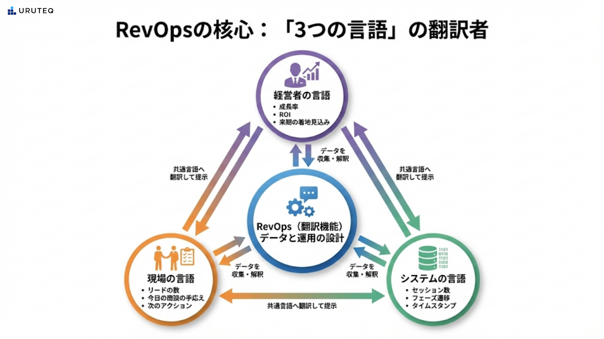 導入の手順よりも、RevOpsとして「翻訳システムが回り始めている状態」を描くと、以下のようになります。