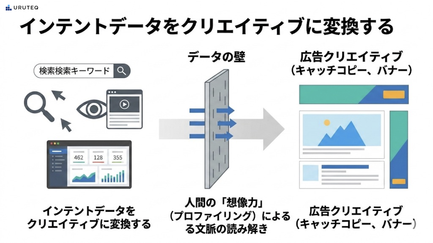 データはどこまでいっても数値と単語の羅列であり、そこから直接、人の心を動かすキャッチコピーやバナー画像が自動生成されるわけではありません。読み解く人間の想像力が介在して初めて、データは意味のあるコミュニケーションへと昇華されます。