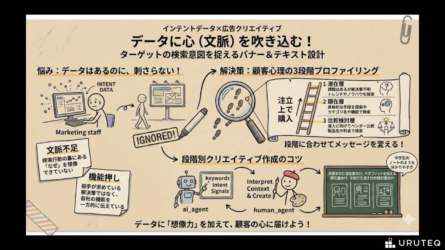 データから文脈を読み解き、仮説を立ててクリエイティブを作り、結果を検証してまた仮説を修正する。この泥臭いループを回し続けることこそが、インテントデータを真の資産に変える唯一の方法です。
