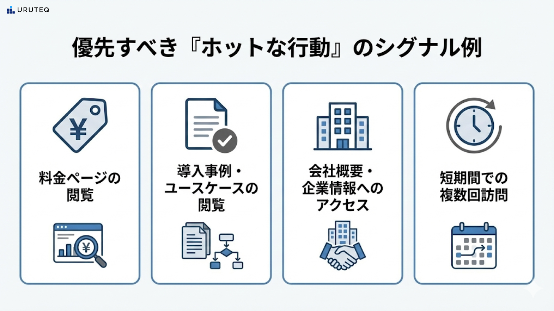 彼らは大きな気付きを得ました。Web行動が見えることと、今すぐ営業をかけるべきかどうかは別問題だということです。重要なのは、Web行動の有無ではなく、その「質」を見極めて優先順位をつけることです。